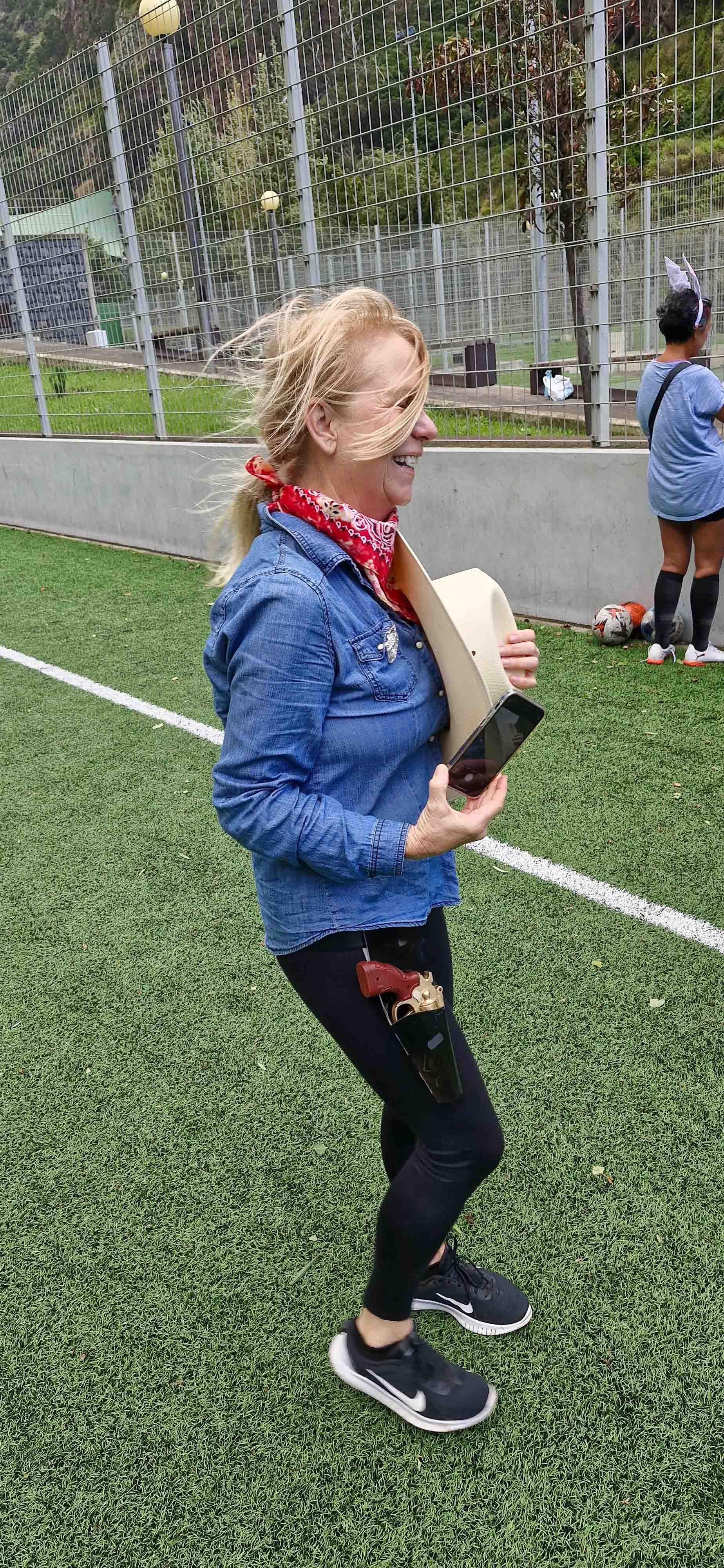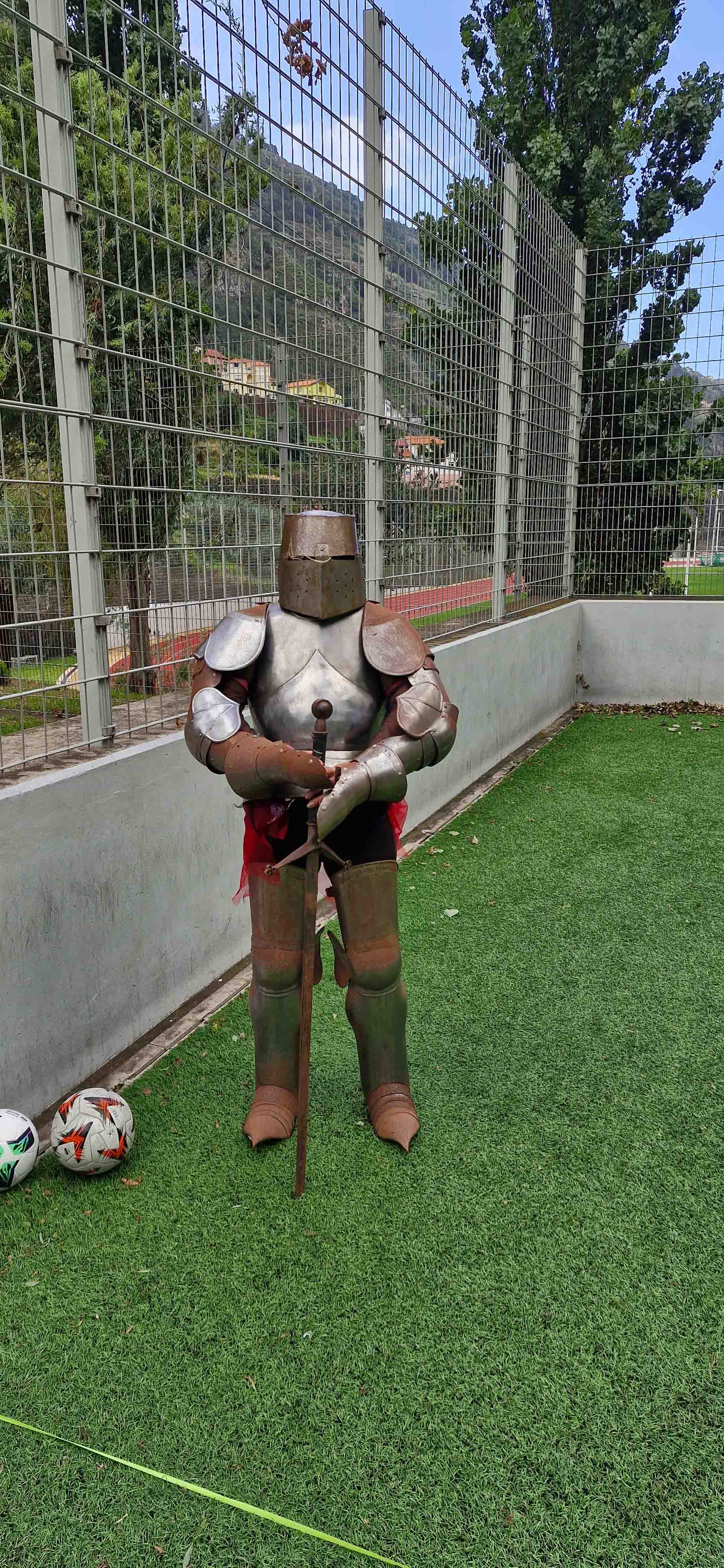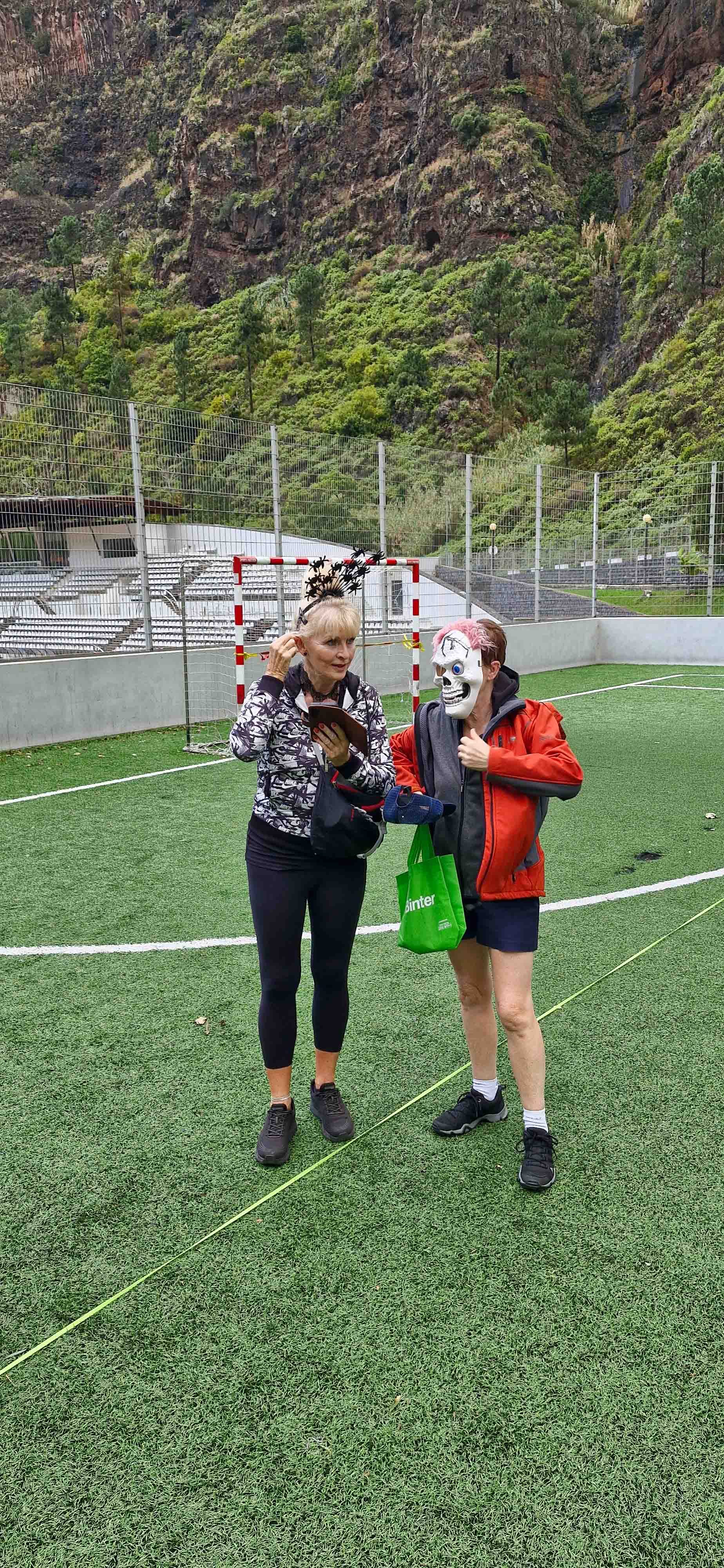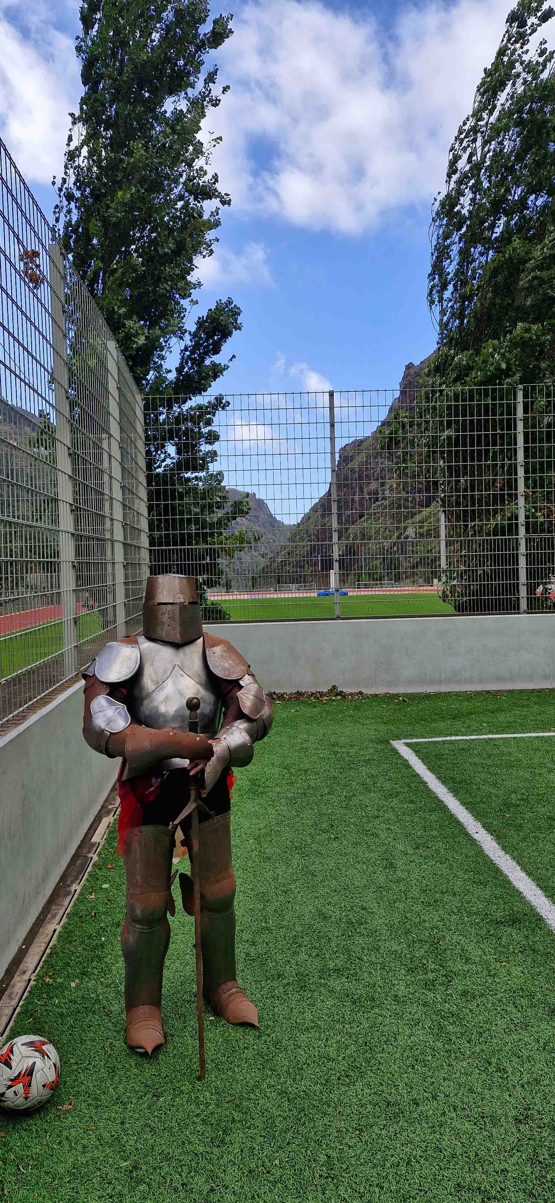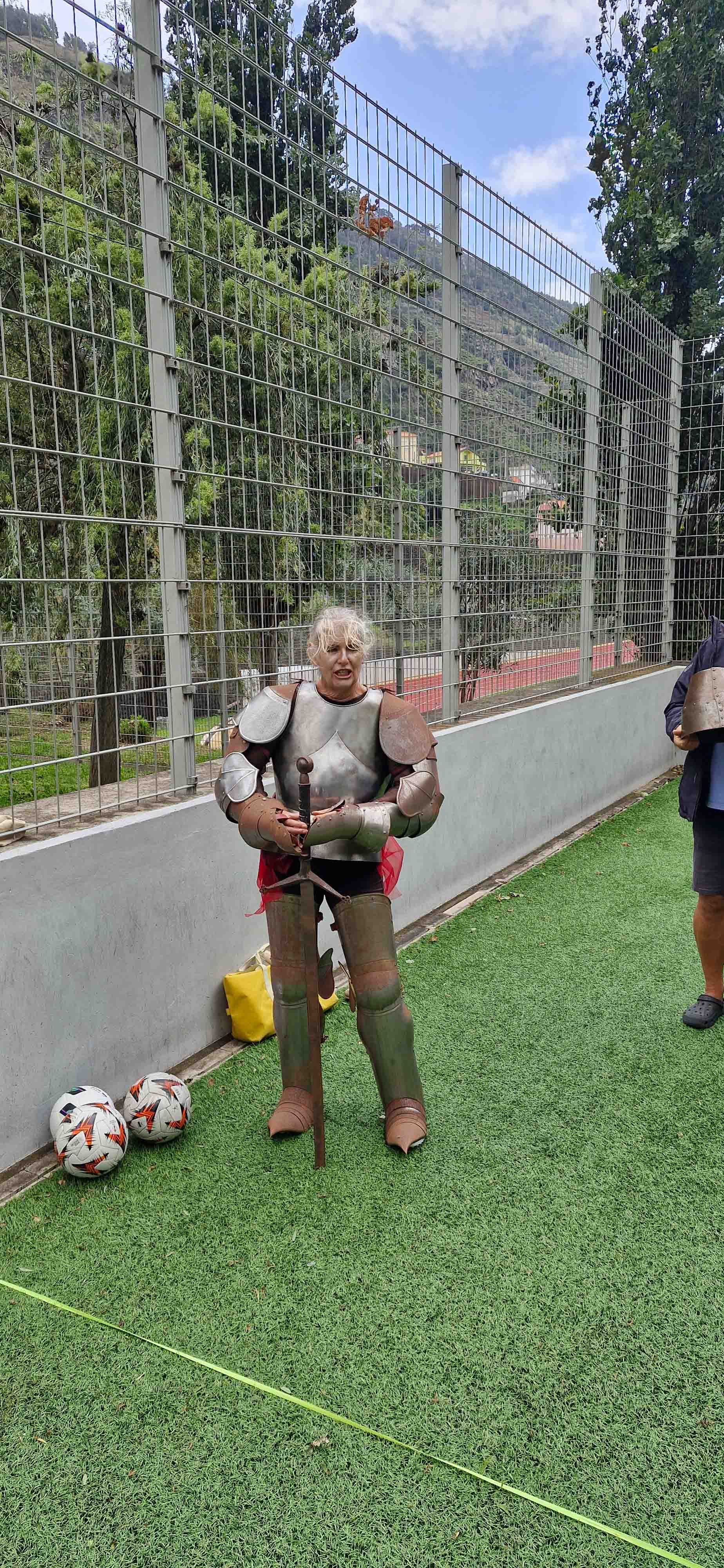 Forget Lancelot … Kate stole the show. She arrived at Centro Desportivo da Madeira in Ribeira Brava clad in full medieval plate armor: chainmail, helmet, gauntlets, the works. With every clank and jingle, it felt like a 14th‑century legend had stepped straight onto the pitch.